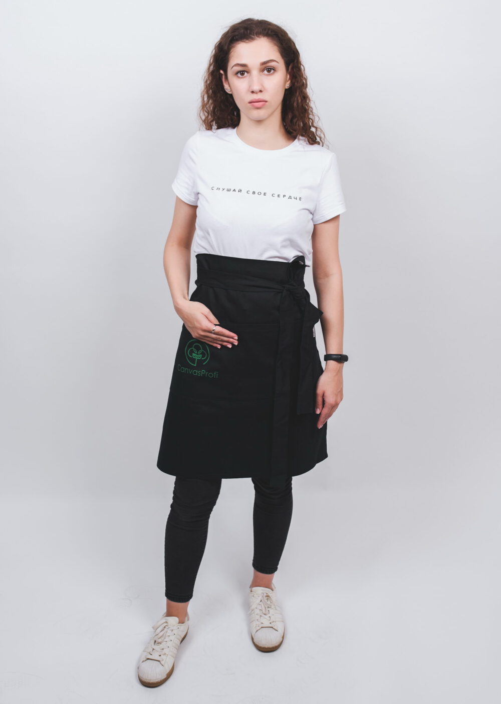 Передник пошит из высококачественной хлопковой ткани беларуского производства, молочно-белого или чёрного цвета. Широкие удобные шлейки, которые можно завязать на талии спереди или сзади, два больших кармана и шлёвка для полотенца. Передник универсального размера, подойдёт как для женщин так и для мужчин. Оптовый заказ подразумевает возможность пошива детских передников.
